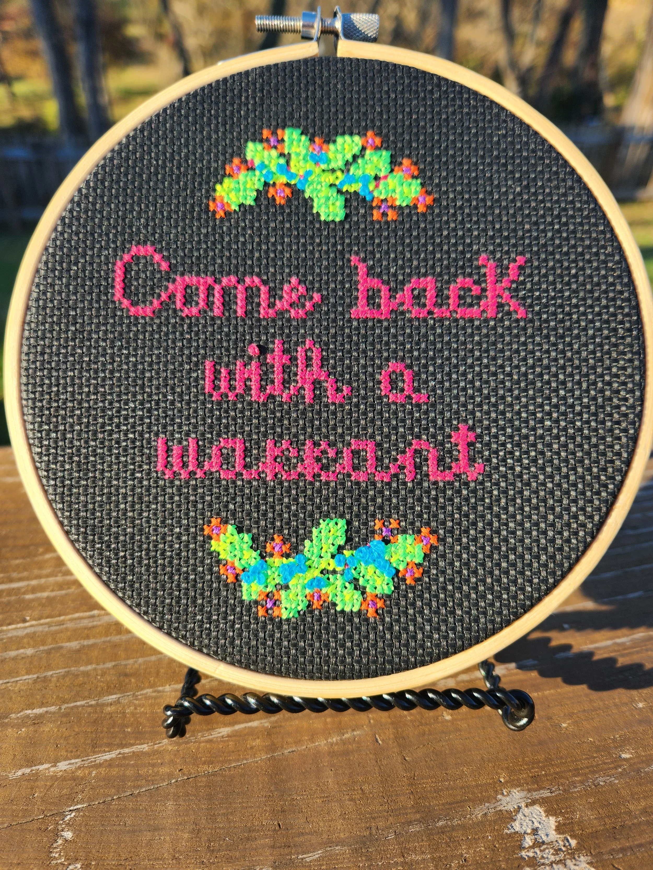Come Back With a Warrant - Neon Version Hoop Art Cross Stitch Kit